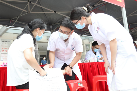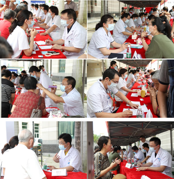 仪式结束后,在揭东人民广场老干部活动中心门口南方医科大学中西医结合医院联合揭东中医院举行大型义诊活动,治未病中心、肾病科、心血管科、肿瘤科、骨伤科、呼吸科/胸部肿瘤内科、皮肤科、泌尿外科、胸外科、风湿病科、妇科、腹部外科、耳鼻喉科、护理部等17位专家为群众健康把脉,活动现场还为市民提供耳穴刮痧、艾灸等中医特色护理服务和免费测血糖血压等服务。
