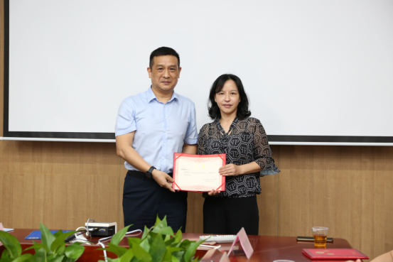 会议最后,番禺区五院蔡云峰书记向我院骨伤科主任黄刚、泌尿外科主任曾京华、妇科主任曾朝阳颁发了学科学术带头人聘书。