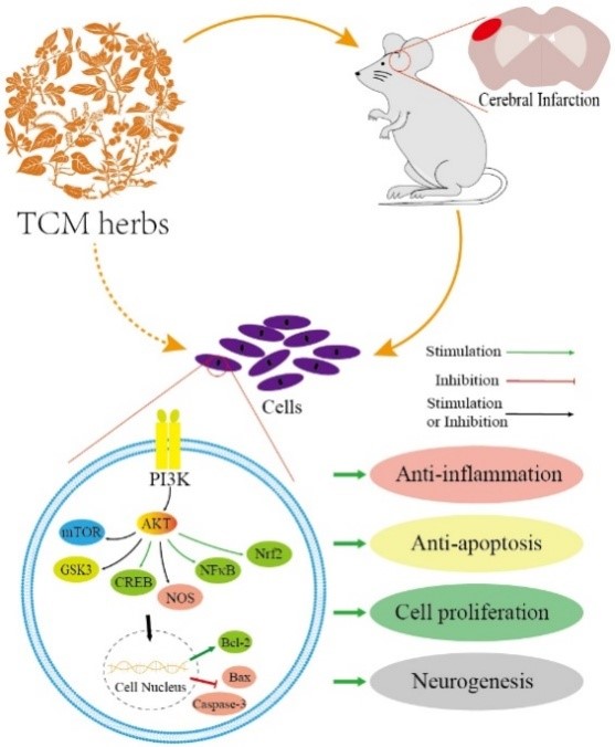 此综述系统总结了近年来中医药治疗卒中涉及PI3K/AKT通路的最新研究进展,为今后从中医药角度探索影响卒中发生、发展的关键因素和寻求有效的激活剂或抑制剂提供新的视角和方向。PI3K/AKT通路作为中药治疗中风的潜在关键通路,为外源性干预和治疗中风提供多种靶点和思路。