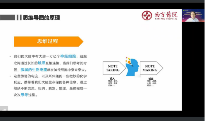 第三环节:授课专家有南方医院内科综合片区肿瘤科护士长缪景霞、广东省中医院内二科护士长肖舒静、佛山市中医院肿瘤科护士长陈银崧、南方医科大学中西医结合医院肿瘤一区护理单元护士长廖荣荣。课程介绍了思维导图在肿瘤患者护理中的应用、“整体横动观”的循经拍打联合黄芪水在气虚型肺癌中的应用以及中医适宜技术在癌痛患者和乳腺癌化疗患者的应用。