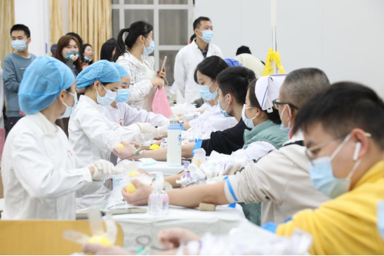 早上八点,献血现场就排起长队。医院领导、支部书记、科室主任、护士长等率先垂范,全院职工、研究生、规培生、进修生、实习人员等积极响应,纷纷撸起袖子献出热血。