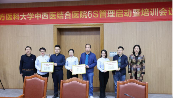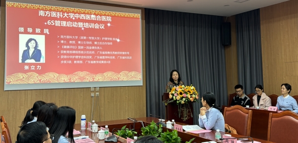 南方医科大学护理学院张立力院长和南方医科大学中西医结合医院潘清川副院长为骨伤科、心血管病科和胸外科3个6S管理示范病区的科主任和护士长授牌。期望试点科室的经验和成果,可为全院开展6S管理提供借鉴。