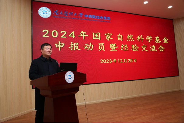 为推进2024年度国家自然科学基金申报工作,促进医院科研高质量发展,12月25日南方医科大学中西医结合医院在智慧诊疗中心会议室召开了“2024年度国家自然科学基金申报动员暨经验交流会”。会议由党委书记陈旭坚主持。