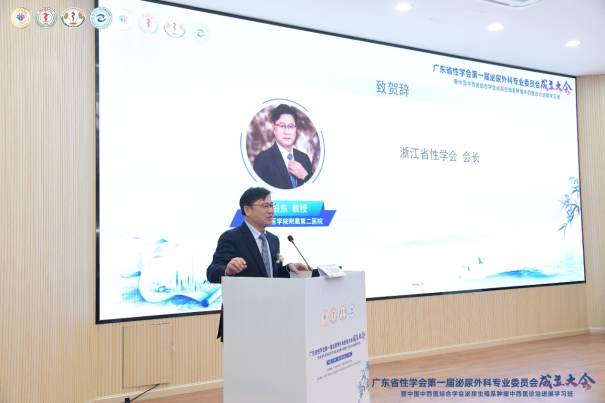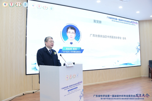 广西壮族自治区中西医结合学会高宏君会长、浙江省性学会吕伯东会长分别代表广西地区和浙江地区兄弟学会致贺词,对广东省性学会第一届泌尿外科专业委员会的成立予以热烈的祝贺和殷切的期望。