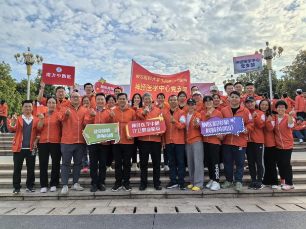 颁奖结束后,大家来到环湖健步走起点,整装出发。随着南方医科大学中医药学院院长兼中西医结合医院院长杜庆锋一声“出发”令!大家以党支部为单位,高举旗子,迈着铿锵的步伐,争先恐后向前健步而行!橙色的队伍成为海珠湖一道靓丽风景线。