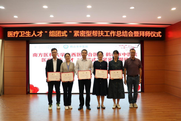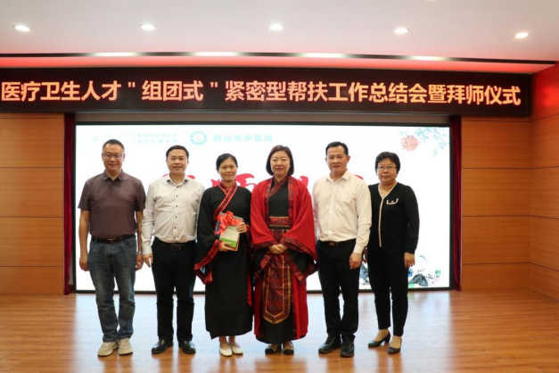 拜师仪式在帮扶总结会后隆重举行,鹤山市中医院肾病科骆韵静主治医师拜南方医科大学中西医结合医院聂晓莉主任医师为师,建立师徒关系,进一步加强了两家医院科室之间的紧密联系。