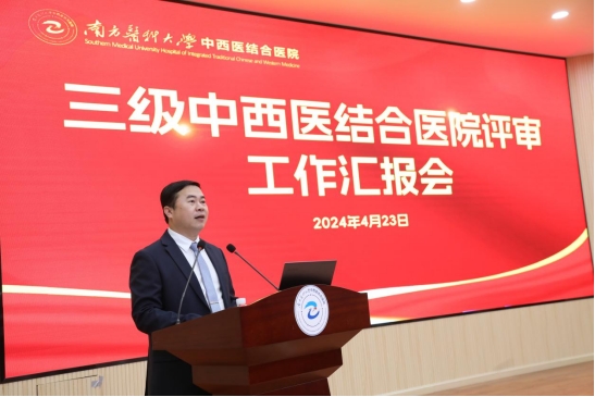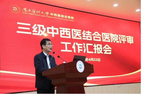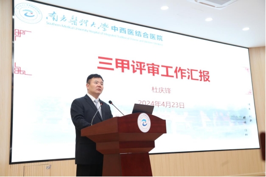杜庆锋院长从医院概况、建设成效、存在不足、发展规划等四个方面介绍了南方中西医的发展情况。