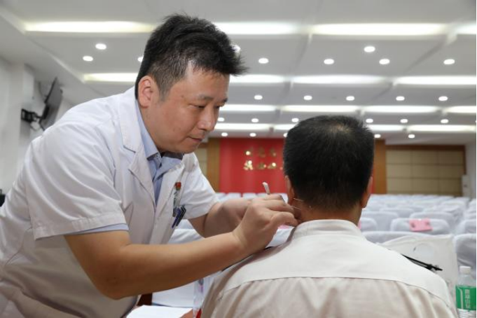 “之前也去医院做过针灸治疗,但因为工作太忙很难坚持,现在你们亲自上门服务,真是太难得了。”一位女民警患混合型颈椎病多年,针灸康复科杨路主任现场为她施针治疗,并建议她选择合适的枕头睡觉。