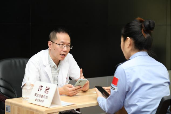 7月11日下午,南方医科大学中西医结合医院联合黄埔边检站开展“健康义诊进警营,爱警暖警聚警心”中医保健诊疗活动。针灸康复科、心血管科、脑病科(神经内科)、内分泌代谢科、泌尿外科、脾胃病科(消化内科)、甲乳血管外科、中医护理共9位医疗专家参加送健康活动。