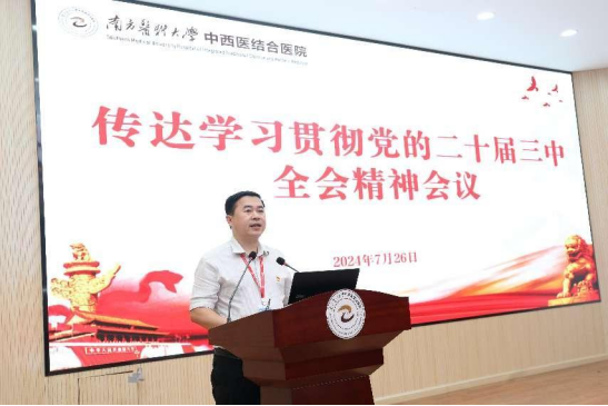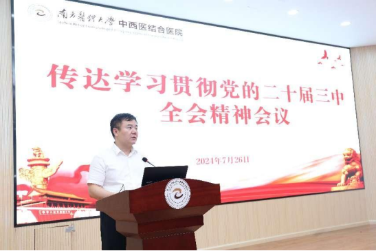 7月26日,南方医科大学中西医结合医院召开专题会议传达学习贯彻党的二十届三中全会精神,部署医院学习宣传贯彻工作,会议由医院党委副书记皮玲主持,全体院领导、党支部书记、中层干部参加会议。