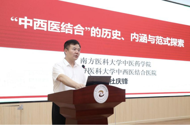 随后,杜庆锋院长给大家做了《“中西医结合”的历史、内涵与范式探索》的主题授课,从“中西医结合历史沿革”、“中西医结合概念内涵”、“中西医结合范式探索”、“中西医结合学习方法建议”四个方面进行了深入浅出的阐述,带领新生进入了中西医结合神秘而又充满魅力的天地。