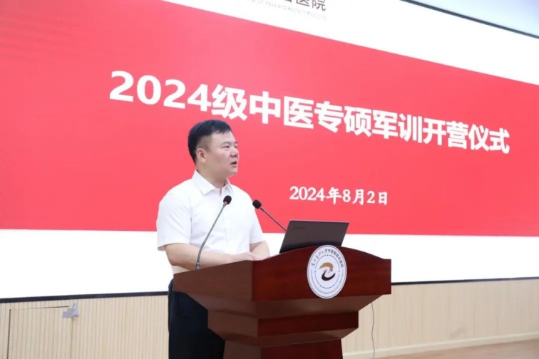 医院杜庆锋院长、皮玲副书记,部队代表,2024年60名中医专业型硕士研究生以及医院机关相关科室负责人参加开营仪式。仪式由科教科科长邢学锋主持。