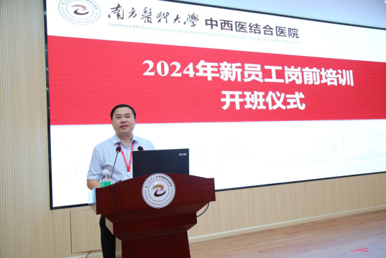 8月27日上午,医院在学术会议厅召开新员工岗前培训开班仪式。院领导、广东省名中医彭康教授、脑病科主任陈俊抛教授、针灸康复科主任导师周国平教授以及机关职能科室负责人出席此次仪式,开班仪式由组织人事科科长黄少慧主持。