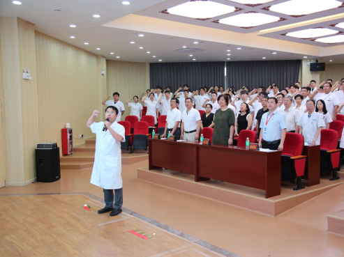在新员工代表脾胃病科林育博士的引领下,全体新员工高举右手,一起诵读《希波克拉底誓言》。代表庄重承诺的誓言,是一份重大的责任和使命,也是新员工承诺终其一生追求的价值观与目标。