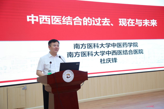 在新职工入职“第一课”上,杜庆锋院长为新职工讲授《中西医结合的过去、现在与未来》。杜庆锋院长强调医院提倡正直、勤奋、智慧、公平和善良的价值观,他要求新员工做到脑勤、手勤、嘴勤、腿勤,并结合自己的亲身经历,语重心长地勉励大家工作中要及时反思和沟通。