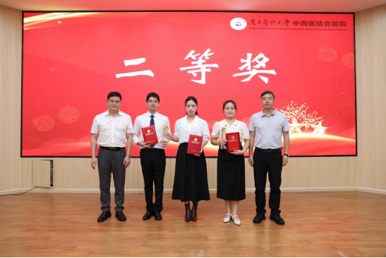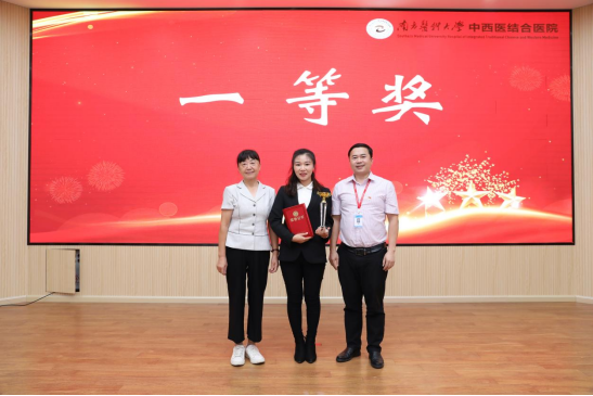刘新明教授和医院陈旭坚书记为一等奖获得者颁奖