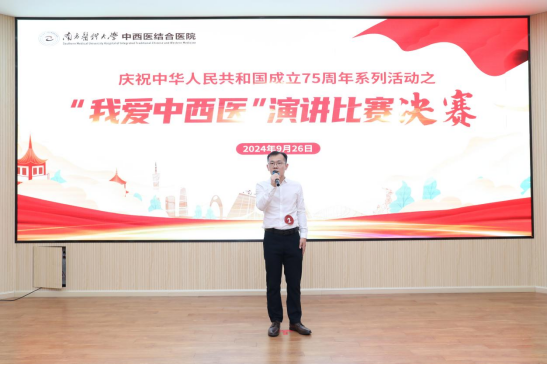 9月26日,南方医科大学中西医结合医院庆祝中华人民共和国成立75周年系列活动之“我爱中西医”主题演讲比赛决赛在医院学术会议厅举行。