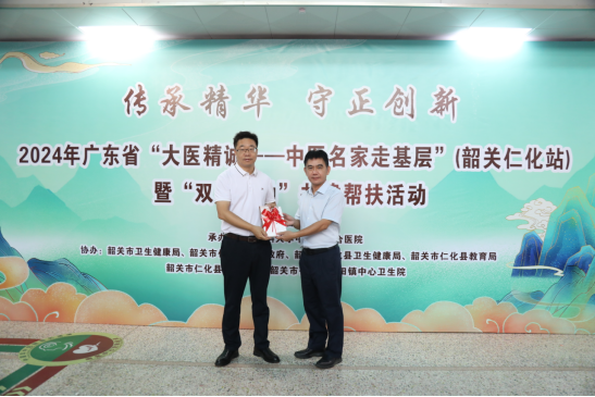 10月19日-20日,2024年广东省“大医精诚——中医名家走基层”暨“双百行动”共建帮扶工作在韶关市仁化县举行,为期2天的活动共为350名群众提供诊疗服务和健康指导,并为仁化县基层医务人员和中小学专兼职校医提供中医药适宜技术和常见急救知识培训。