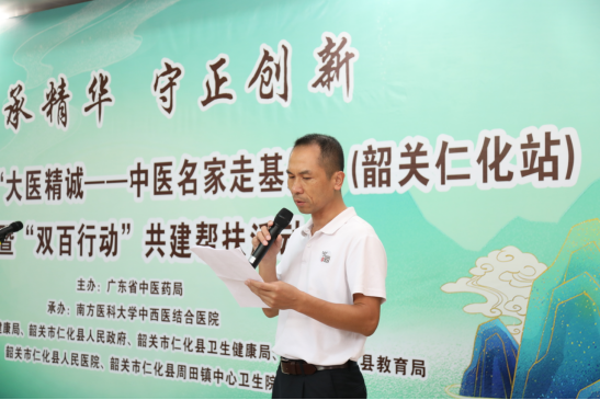 南方医科大学中西结合医院纪委书记邓建希指出,“大医精诚——中医名家走基层”第44站活动再次走进仁化,并与“双百行动”有机融合,内涵丰富,是持续深入实施中医药文化弘扬工程,推进落实南方医科大学“双百行动”结对共建工作要求的具体举措之一,意义深远。过去的一年里,在驻镇帮扶队的枢纽作用下,我们也和本县周田镇中心卫生院保持着密切联系,接收技术骨干人员到南方中西医进修。今后将进一步加强与仁化县人民医院及县域基层医疗机构的帮扶共建工作,根据“县域所需”,结合“医院所能”,举办更多元化、更多形式的帮扶共建活动。