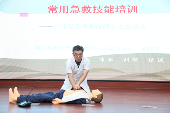 急诊科副主任吴晓伟讲授《常用急救技能培训——心肺复苏和海姆立克急救法》