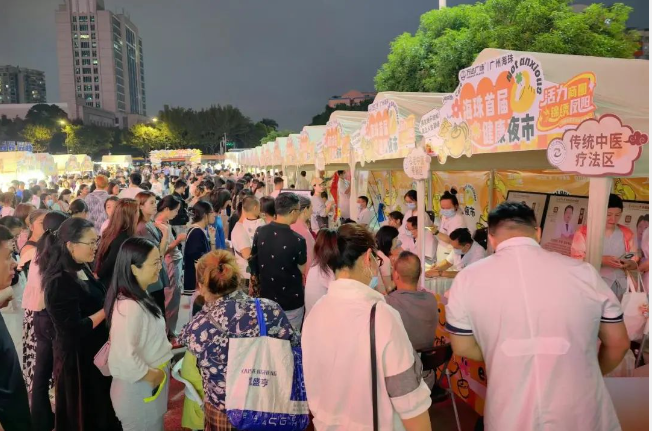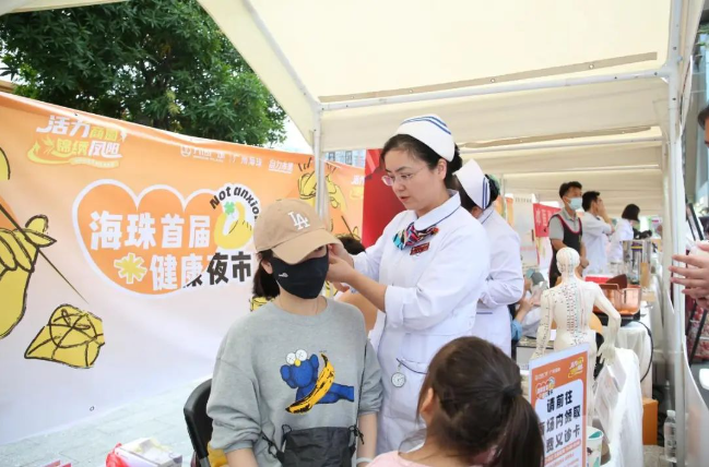 11月9日,海珠区首届大型健康文化集市,潮玩健康夜市及潮玩文化市集活动在海珠区万达广场正式拉开帷幕。此次活动由海珠区公共卫生委员会、海珠区卫生健康局、凤阳街道办事处等单位联合主办,南方医科大学中西医结合医院作为主要协办单位,派出多位医、护、药专家参与本次活动。