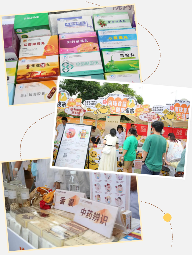 本次活动自11月9日起至11月17日止,为期九日。在此期间,南方医科大学中西医结合医院参与了11月9日-11月11日三天活动。医院在活动现场精心设置了七大主题展位,包括“‘康老中医’凉茶铺”“辨体养生膏方药局”“名老中医号脉专区”“传统中医疗法展示区”“中医护理特色疗法体验区”“中药辨识与院内制剂展示及香囊领取区”以及“医保守护,健康无忧”服务专区。