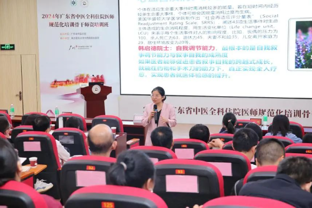 ▲南方医科大学叙事医学中心杨晓霖主任做《叙事医学在中医全科规培带教中的运用》主题授课