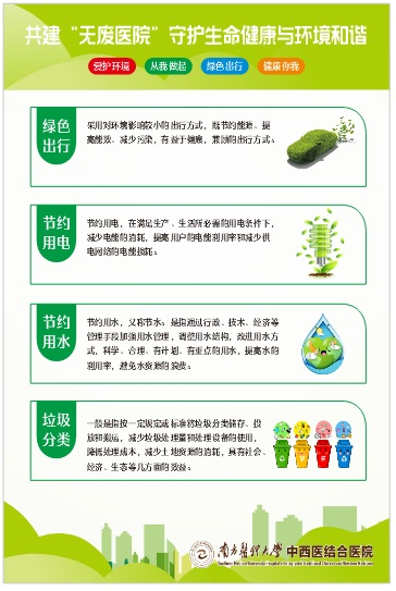 严格按“无废医院”建设要求,医院从院领导到基层员工,从用电、用水、办公及会议等,倡导全体员工多节能、节水、环保、利用,减少使用一次性用品、塑料制品、纸张用度,全面实现OA信息化办公,“不浪费多余纸张”、“人走关灯关窗”,积极践行无废工作方式,加快形成人人参与“无废医院”建设的新局面。