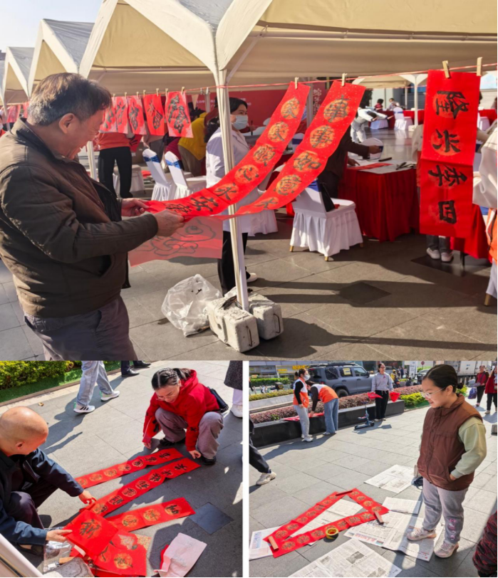 “我就住附近,看到惠民活动预告,我特意来找书法家们帮我写副对联‘事事如意大吉祥,家家顺心永安康’”,陈先生拿到后很是开心,一边在给邻居打电话让他们也速速来活动现场“领取”迎春福利……