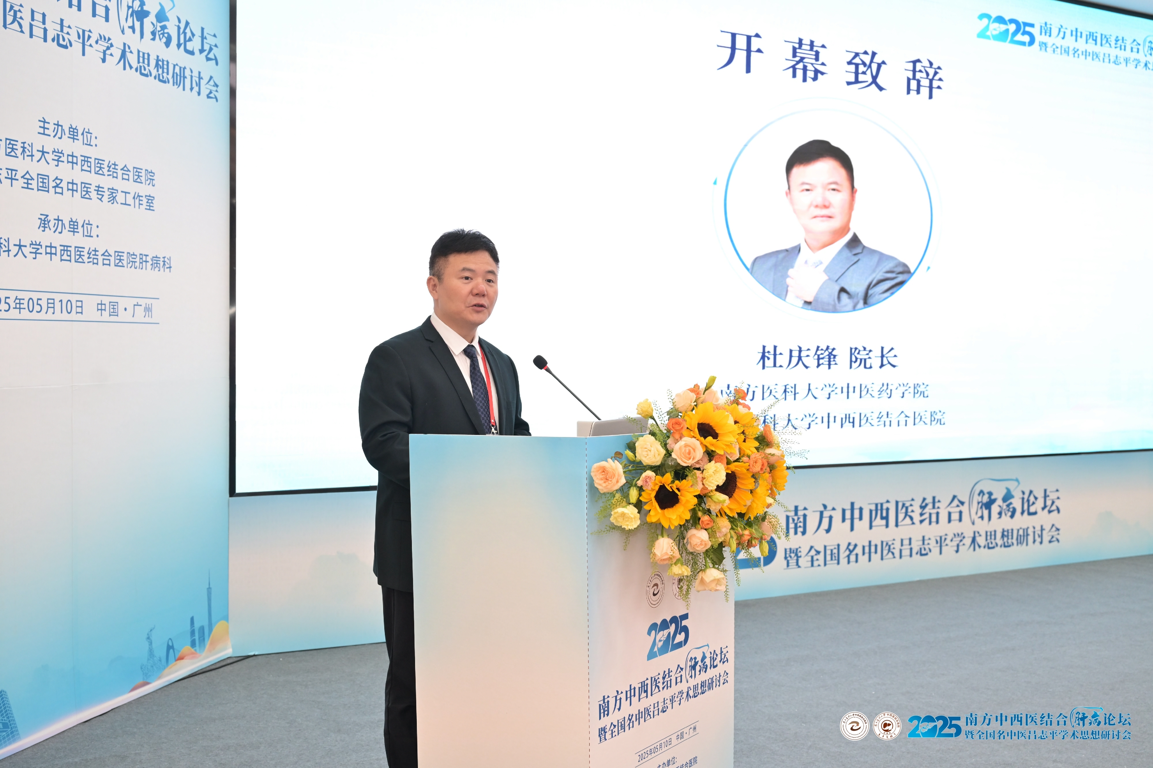 杜庆锋院长代表医院向莅临会议的各位嘉宾表示热烈欢迎,他指出,当前肝病防治面临“发病率高、防治难度大、基层资源薄弱”等挑战,吕志平教授在肝胆病防治领域已深耕40余年,形成了极具特色的学术体系,为岭南肝病防治树立了标杆,其学术思想不仅是医院的宝贵财富,更是中医药事业的宝贵财富,此次研讨会将深入挖掘其科学内涵,培养更多中西医结合人才。强调本次论坛是推动中西医结合肝病诊疗规范化的重要契机,期待专家学者通过学术碰撞,催生更多创新成果,为患者探索更优治疗方案。