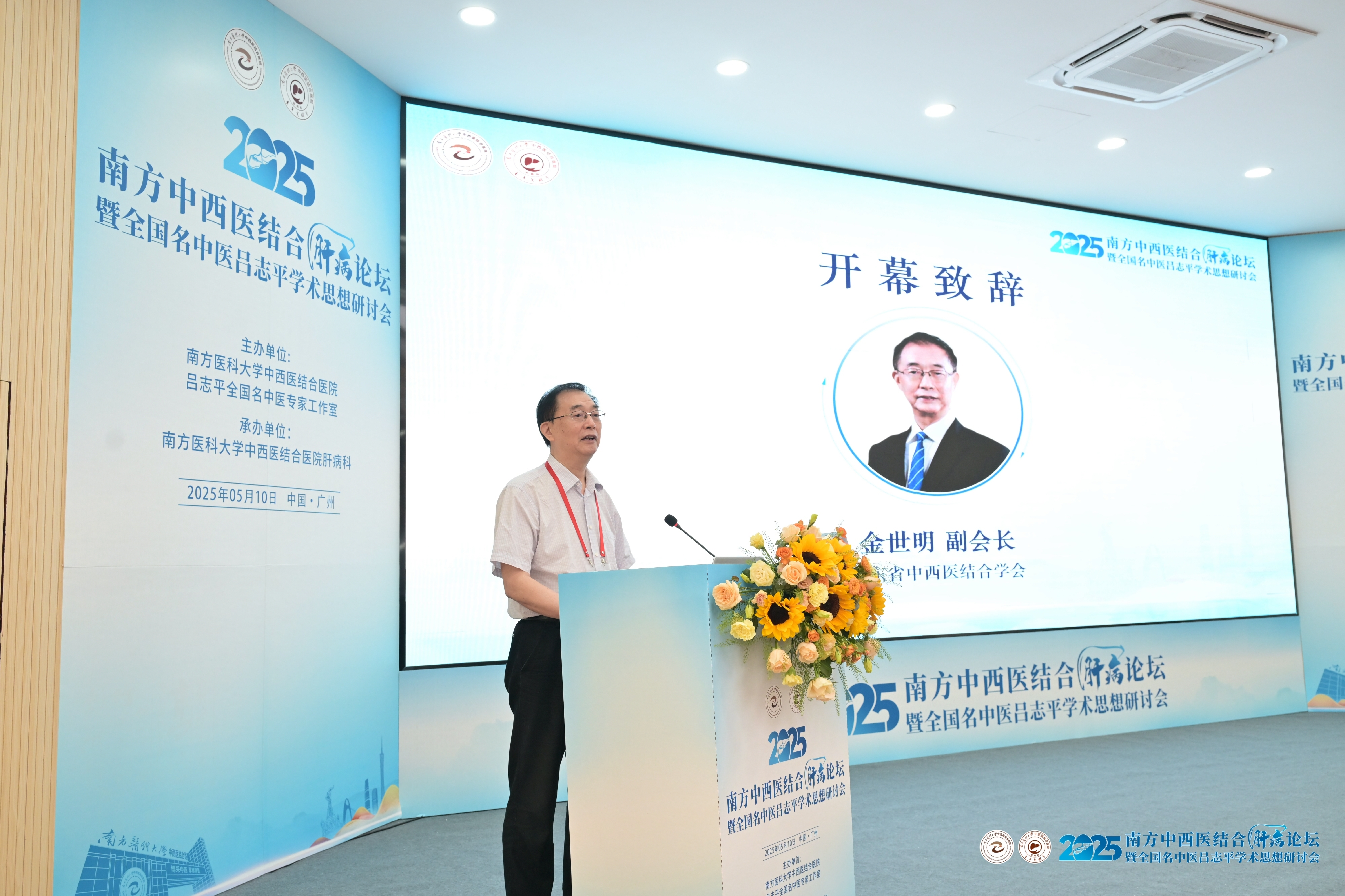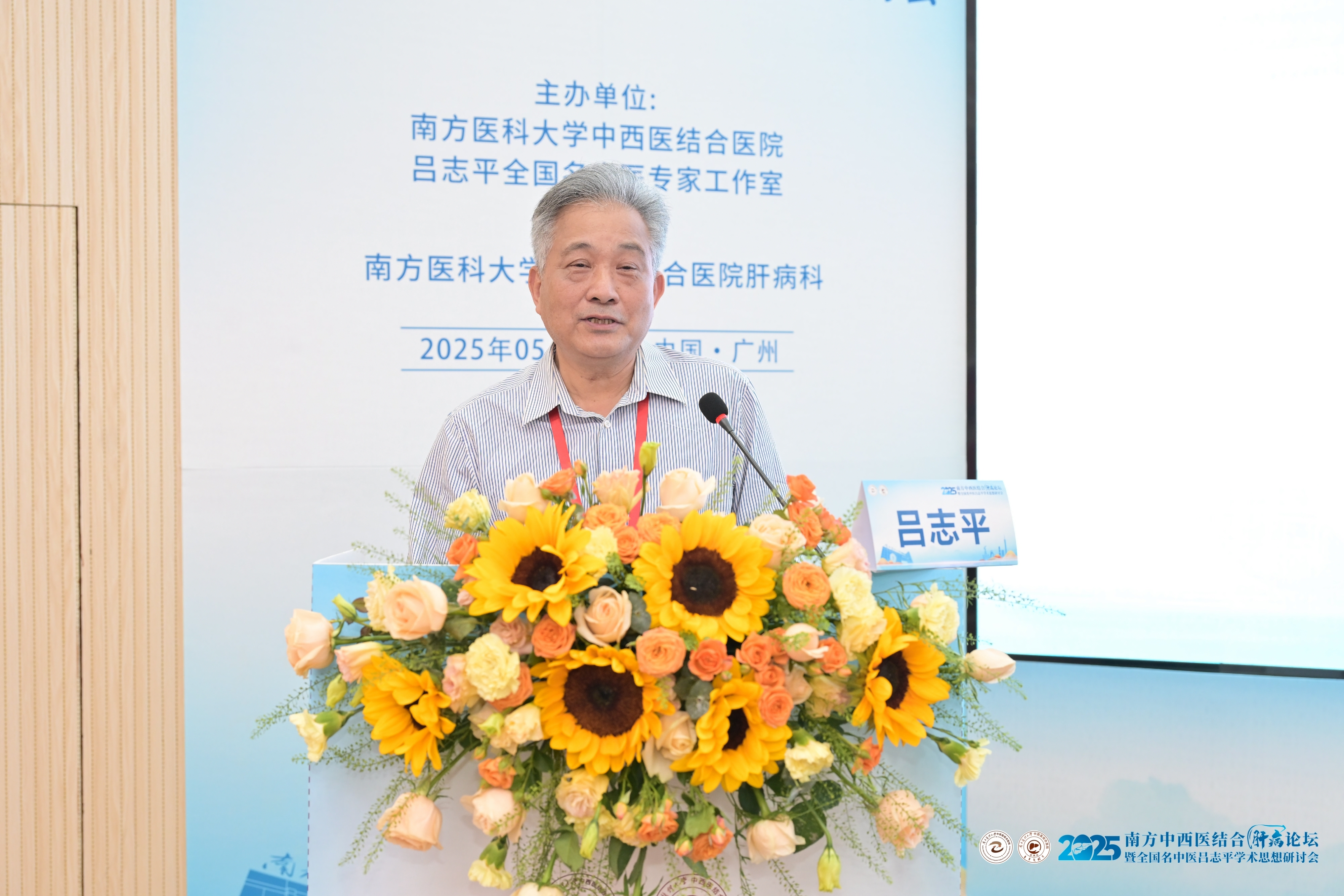 广东省中西医结合学会副会长金世明致辞,他指出,中西医结合治疗肝病,将中医整体观念、辨证论治与西医先进诊疗技术相结合已成为当下医学发展的重要方向。本次研讨会旨在搭建一个高水平的学术交流平台,共同探讨肝病防治的新思路、新方法、新技术,推动中西医结合肝病事业的发展。此次对吕志平教授学术思想进行研讨,是对其学术成就的传承与弘扬,希望同仁们通过深入交流,将吕志平学术思想与临床实践、科研创新相结合,转化为实际生产力,提升中西医结合肝病诊疗水平,推动肝病学科发展。