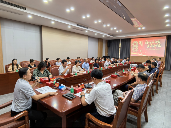 在“八一”建军节即将到来之际,为铭记光辉历史,传承红色基因,弘扬拥军优属光荣传统,7月31日,南方医科大学中西医结合医院在和园三九厅举行退役军人及现役军人家属代表座谈会,听取大家对医院发展改革的意见建议,向全院退役军人、现役军人家属致以崇高敬意和节日问候。座谈会由协管领导、医院办公室主任蔡红兵主持,医院党委书记陈旭坚出席活动并讲话。孙晓敏副院长、退役军人代表、现役军人家属等参加座谈。