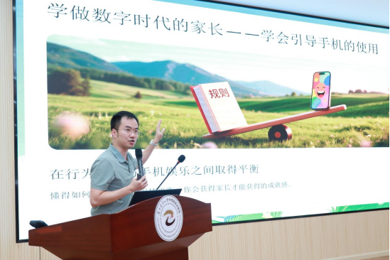 陈建斌治疗师以《青少年手机成瘾的预防与干预》为主题,从心理学角度解析成瘾机制,提供“家庭监督 + 学校引导”联合干预的策略。