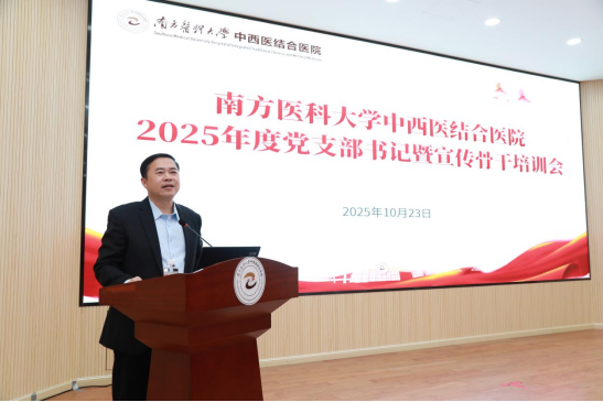 10 月 23 日,南方医科大学中西医结合医院 “融媒时代・‘医’心宣教 —— 提升医院宣传与品牌塑造力” 主题培训在学术报告厅顺利举行。医院党支部书记、宣传委员、各科室宣传通讯员齐聚一堂,通过“专家授课 + 实战导向” 的形式,补足宣传能力短板,打通“党建 + 宣传”融合通道。医院党委书记陈旭坚作开班动员,分管宣传工作的副院长黄少慧主持培训。
