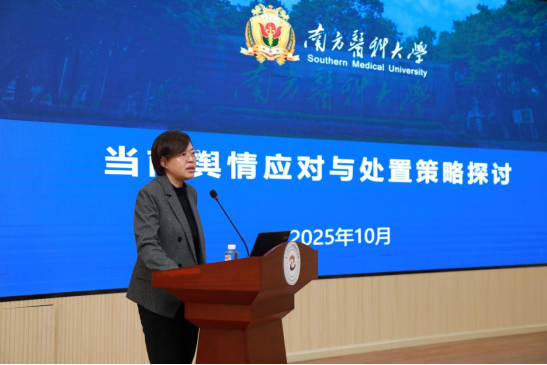 南方医科大学党委宣传部部长邹莹结合高校宣传工作实践经验,聚焦“新媒体环境下的舆情防控”,围绕“近期舆情的主要类型、舆情处置案例及方法”,通过案例分析、策略拆解,深入浅出讲解了新媒体时代舆情监测、预警、处置的关键环节,帮助大家建立了科学舆情观,为医院日常防范宣传风险、高效化解舆情隐患、维护稳定品牌形象提供了实操方法。