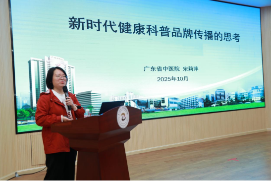 广东省中医院宋莉萍主任以“新时代健康科普品牌传播的思考”为题做分享,结合《健康中国行动》《中医药文化传播行动实施方案》等政策,提出“变、立、情”核心思路。她强调需转变科普思维与创作模式,以“每日一膳”专栏、“望舌问膳”AI 小程序等案例,示范精准匹配受众需求的科普路径;建议借力主流媒体扩影响,拥抱 AI 提升创作效率,同时注重共情,挖掘专家与典型病例故事,实现健康传播与医院品牌建设双向赋能。