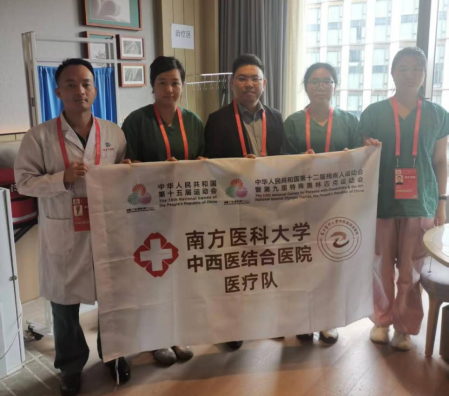 在第十五届运动会及残疾人特殊奥林匹克运动会期间,南方医科大学中西医结合医院作为指定的赛场与官方酒店医疗保障单位,以高度的政治责任感和使命感,全力以赴投入各项保障工作。目前,排球项目男子20岁以下组比赛的赛事现场医疗保障任务已圆满收官,酒店驻地保障工作亦在平稳有序进行中,充分展现了我院出色的应急响应能力与专业的医疗服务水平。