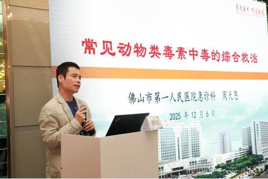 佛山市第一人民医院急诊科主任周天恩教授则聚焦于《常见动物类毒素中毒的综合救治》。周教授系统地介绍了常见动物类毒素的种类和特点,并结合临床案例,详细阐述了各种中毒的识别和处理方法,为医务人员应对此类突发事件提供了实用指导。