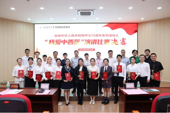 9月26日,南方医科大学中西医结合医院庆祝中华人民共和国成立75周年系列活动之“我爱中西医”主题演讲比赛决赛在医院学术会议厅举行。