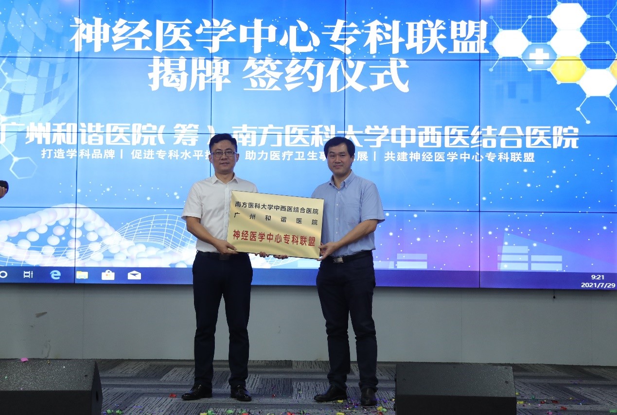 7月29日,南方医科大学中西医结合医院与广州和谐医院举行神经医学中心专科联盟签约挂牌活动,并开展专家联合义诊。我院党委委员、神经医学中心兼神经外科主任陈陆馗带领神经外科、脑病科、针推康..