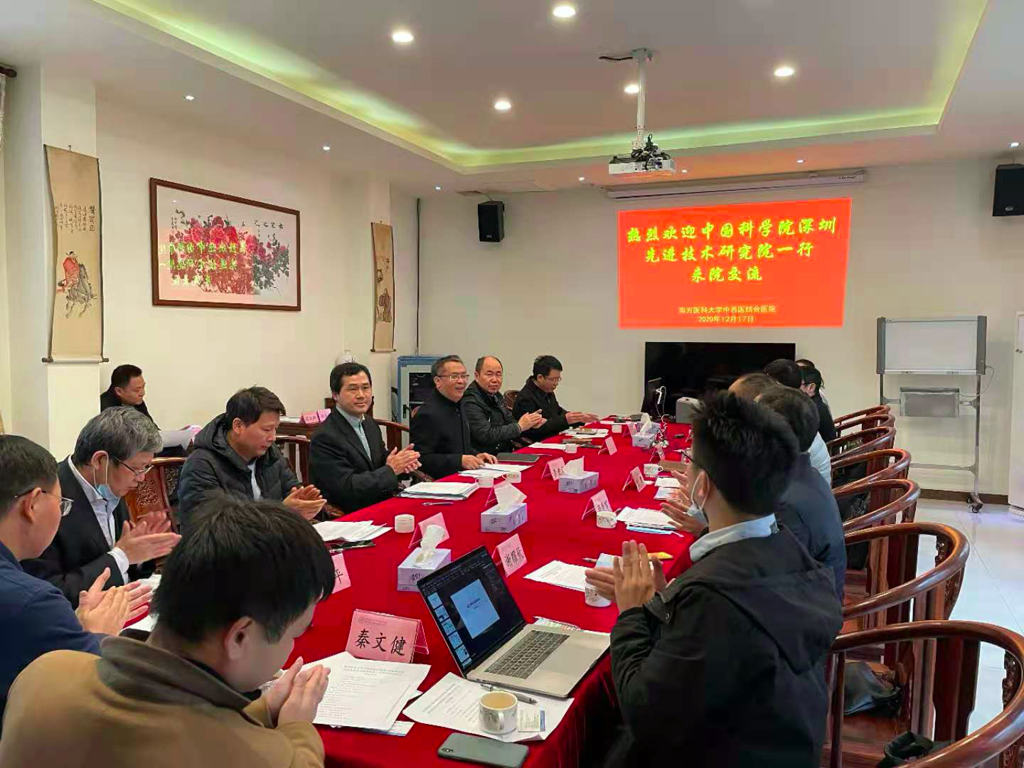 12月17日,中国科学院深圳先进技术研究院(下称先进院)科研处副处长张鹏等一行9人来访我院,并在专家公寓与我院相关专家举行了医工学科交叉研讨会。
