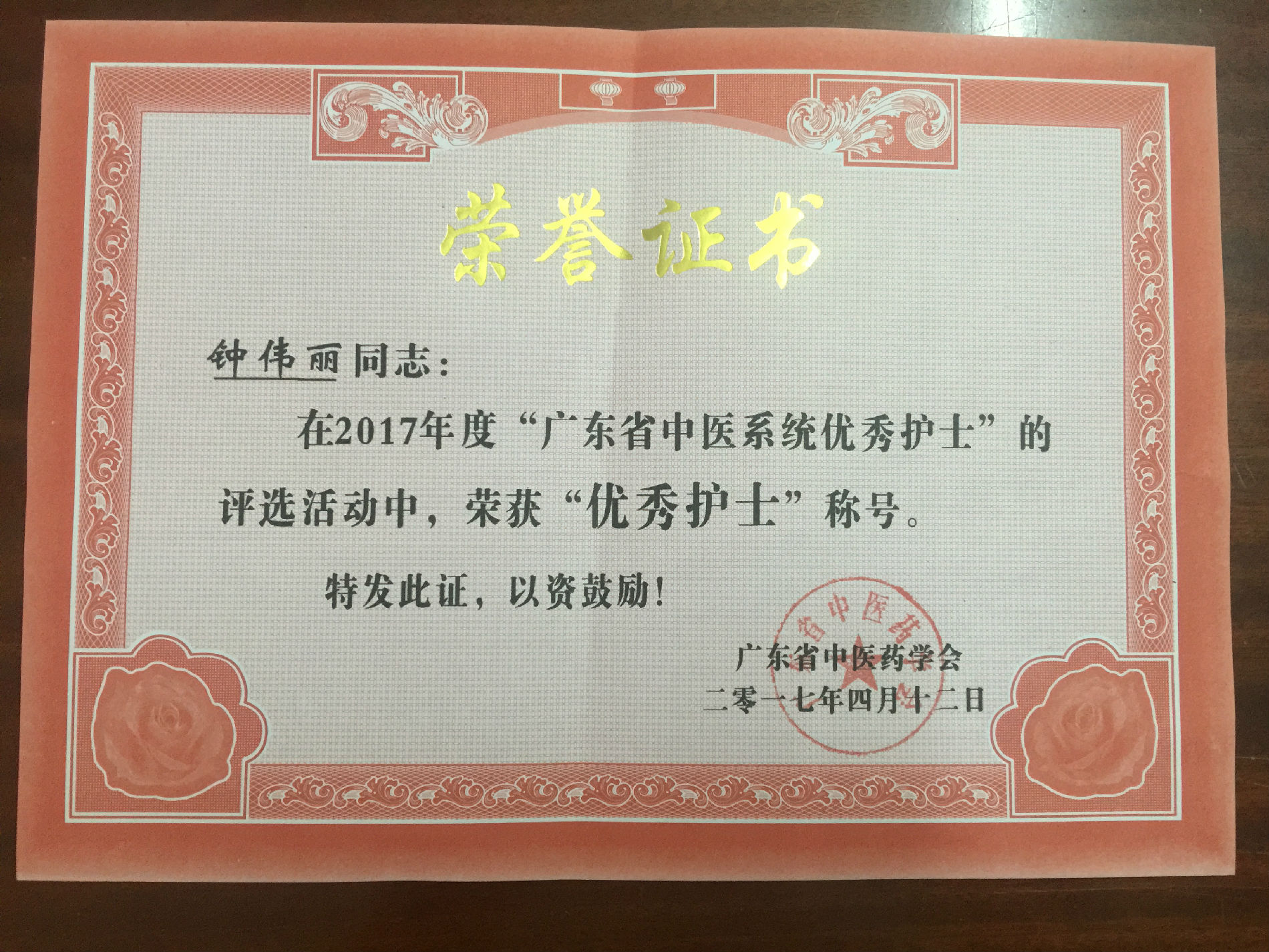 近日,我院护理部传来喜讯,门诊部钟伟丽护士长荣获“广东省中医系统优秀护士”称号;肿瘤中心荣获“广东省中医特色优秀科室”称号。