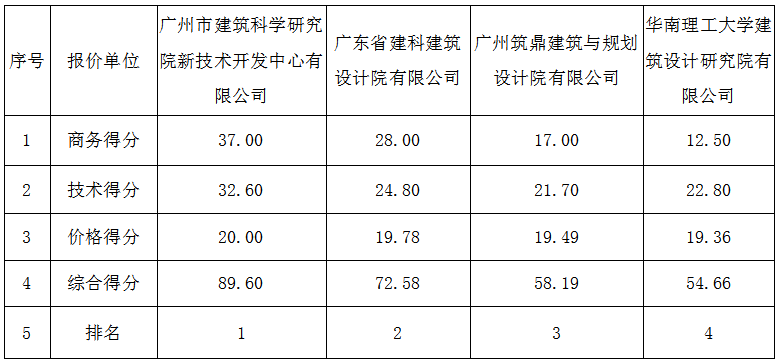第一成交候选人:广州市建筑科学研究院新技术开发中心有限公司,成交价格为722000元(柒拾贰万贰仟元整);