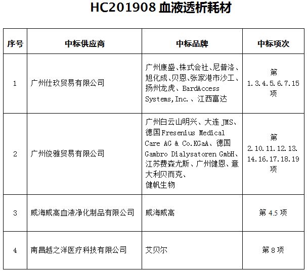 我院2019年10月16日召开医用耗材的院内论证会,经医院专家综合评分确定如下的中标结果,现予以公示: