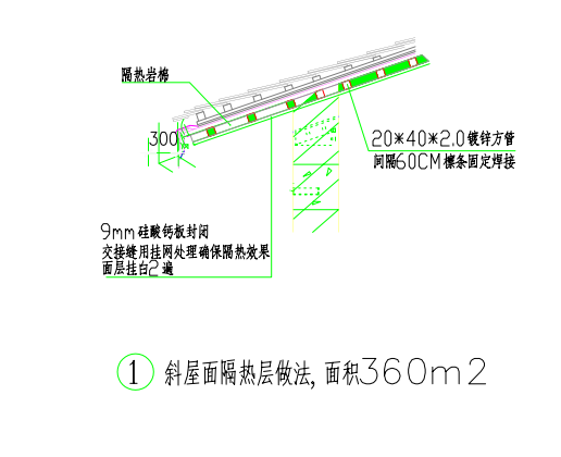 焊接镀锌方管做支架、安装隔热岩棉、硅酸钙板封闭。