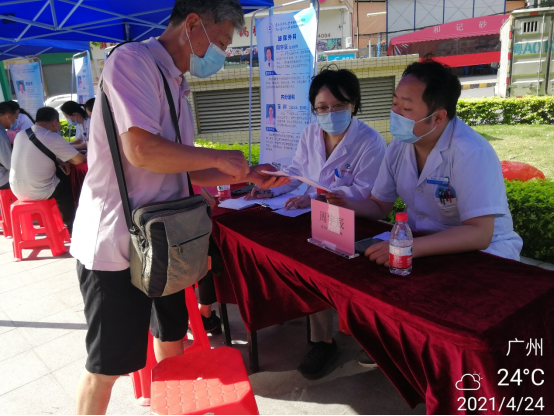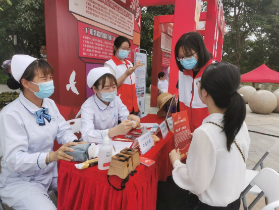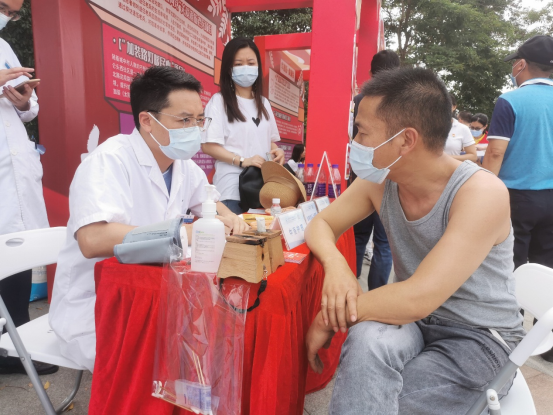 4月24日上午,由海珠区委主办的“您的心愿,我的志愿”党组织、党员为群众办实事“双微”行动在海珠湖北广场举行,我院“青·健康”志愿者服务队5名青年医务人员参与义诊活动。