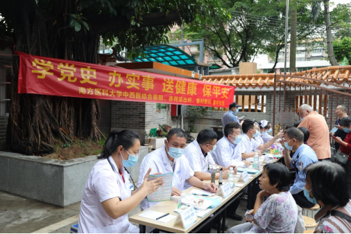 为将党史学习教育成果融入到日常工作,把学习成效转化为干实事的实际行动,切实守护群众健康。4月17日上午,我院联合广州市公安局海珠区分局赤岗派出所、客村联队、客村社区在客村大礼堂开展“学党史 办实事 送健康 保平安 ”活动,让周边群众有实实在在的幸福感、获得感和安全感。