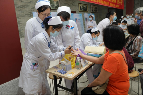 活动现场吸引了许多群众参与,专家们仔细询问居民的健康状况,耐心解答群众的健康咨询,给予相应诊断并提供可行的诊疗建议;护理志愿者们为群众提供艾灸、耳穴压豆等特色中医护理操作,专业、丰富的医疗公益服务得到了群众的认可和点赞。