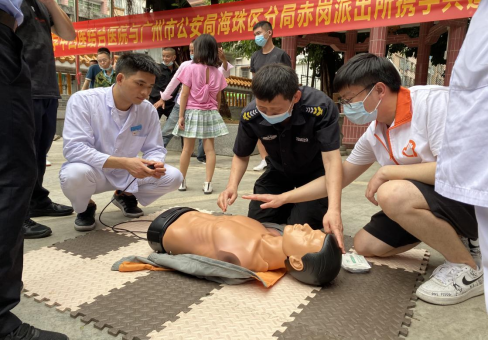 活动最后,我院针对赤岗派出所民警工作特点,为全体人员开展了日常工作健康科普养生知识培训,并手把手教会在场民警们如何进行心肺复苏。