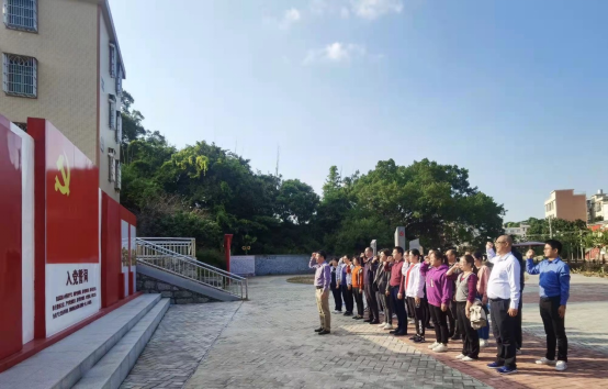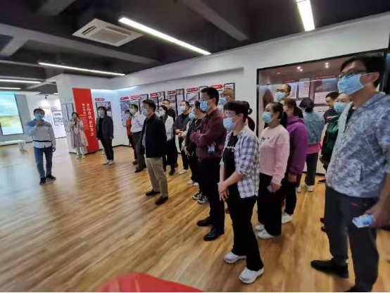 在红场公园,支部书记肖长虹带领全体党员重温入党誓词,再次提醒党员不忘初心,坚定理想信仰。